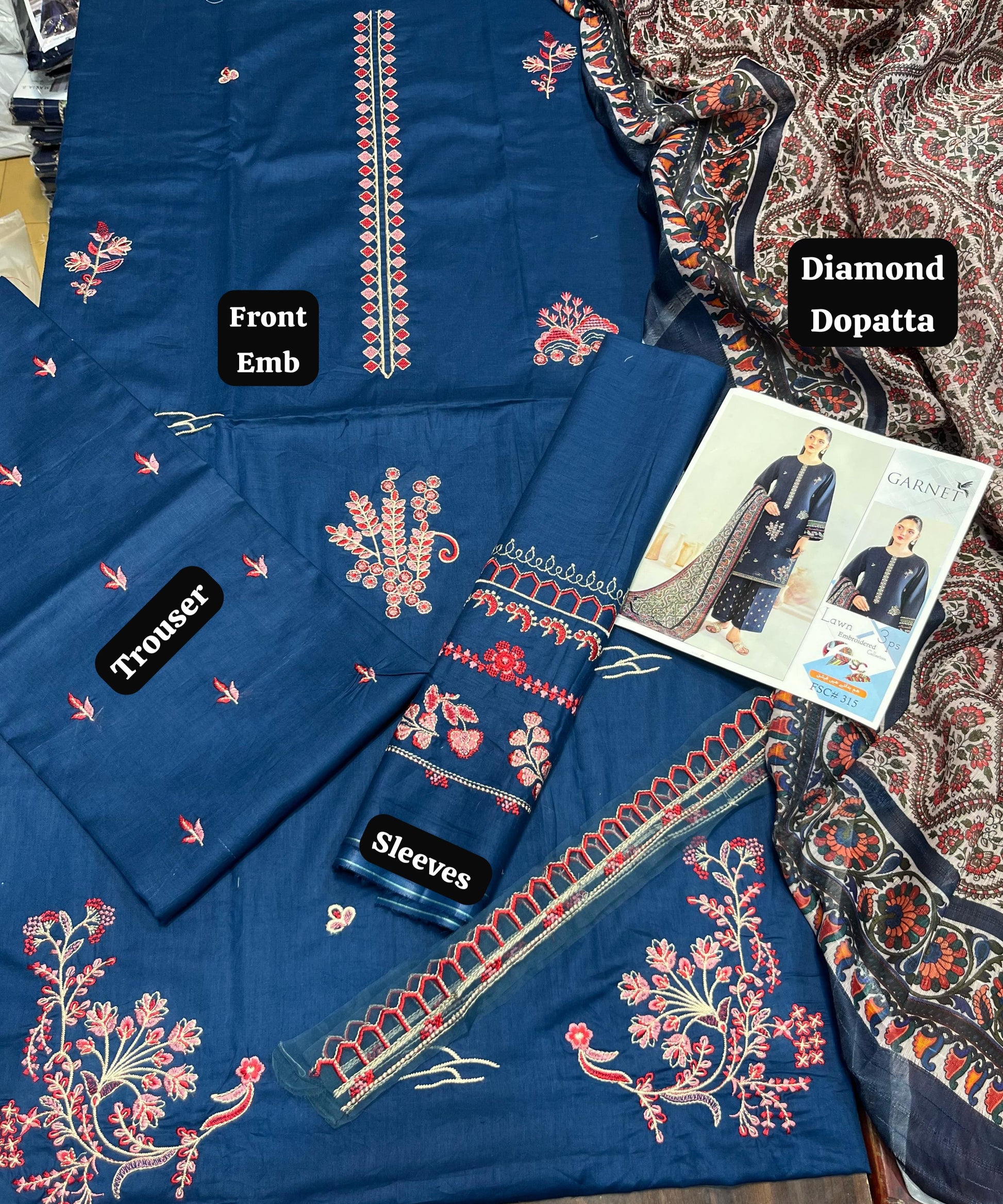 Garnet Luxury collection hit Code Available on Fine Quality Lawn with Diamond Dopatta