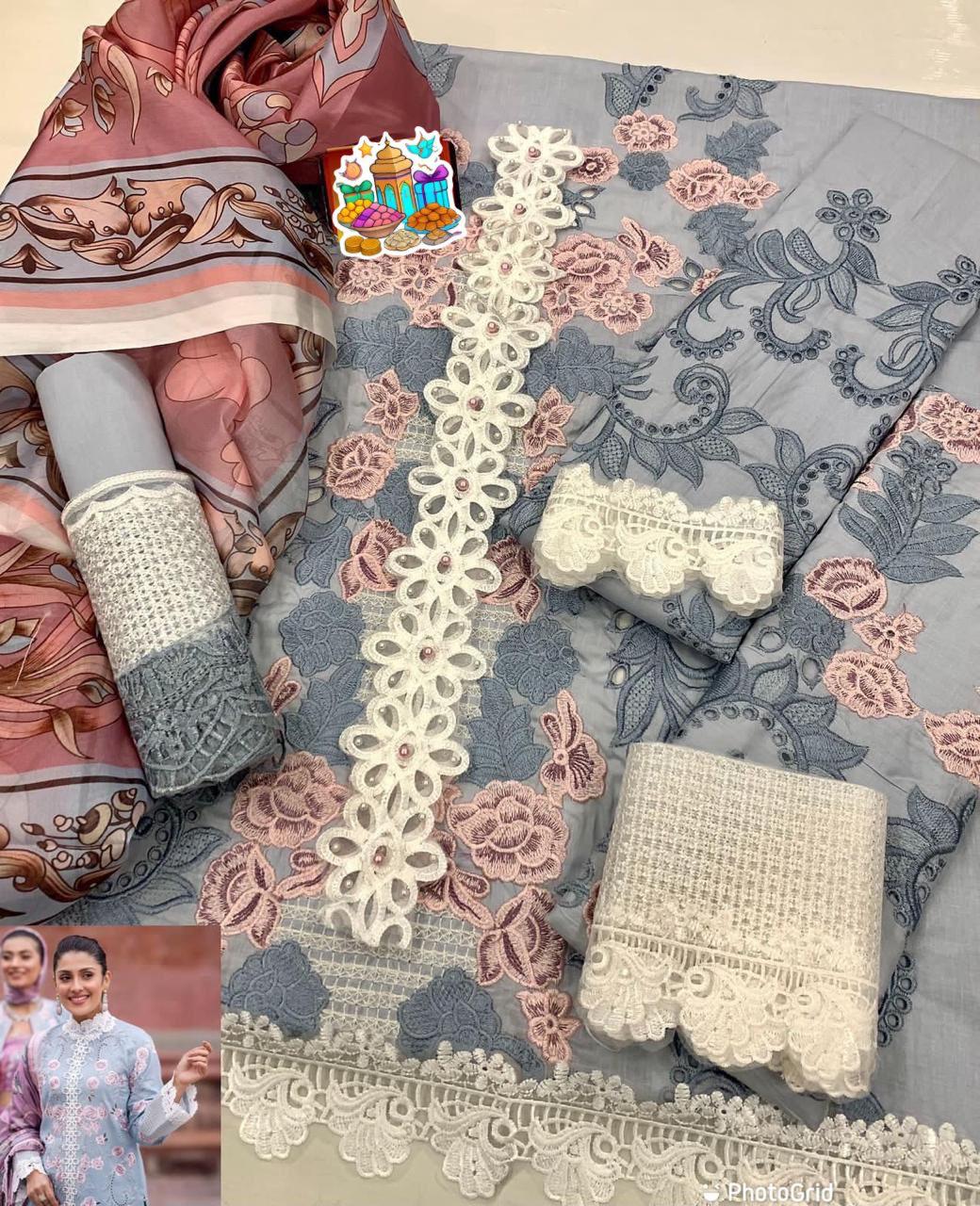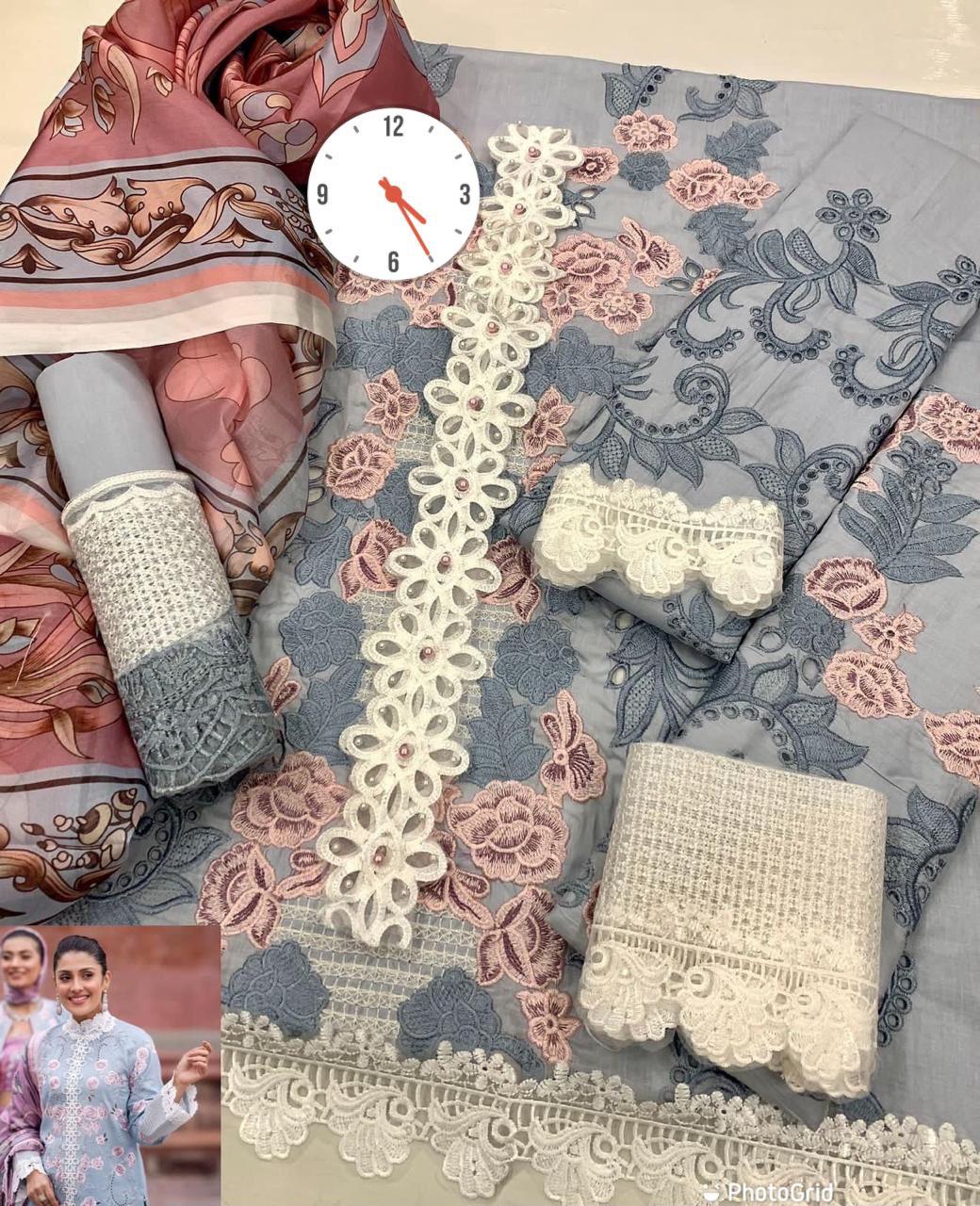 *lawn fully heavy alternet embroidered scifflie front with heavy embroidered centre lace with beats attach with heavy embroidered daman boarder*