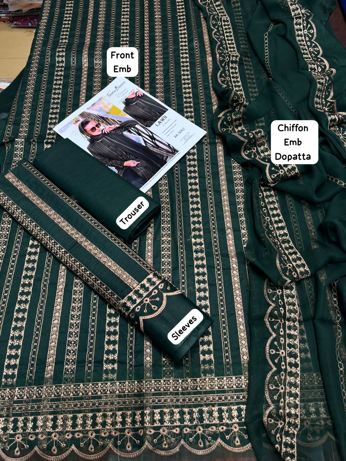 *Tana bana summer collection hit Code Available on Fine Quality 90/70 Lawn with Chiffon Emb Dopatta*