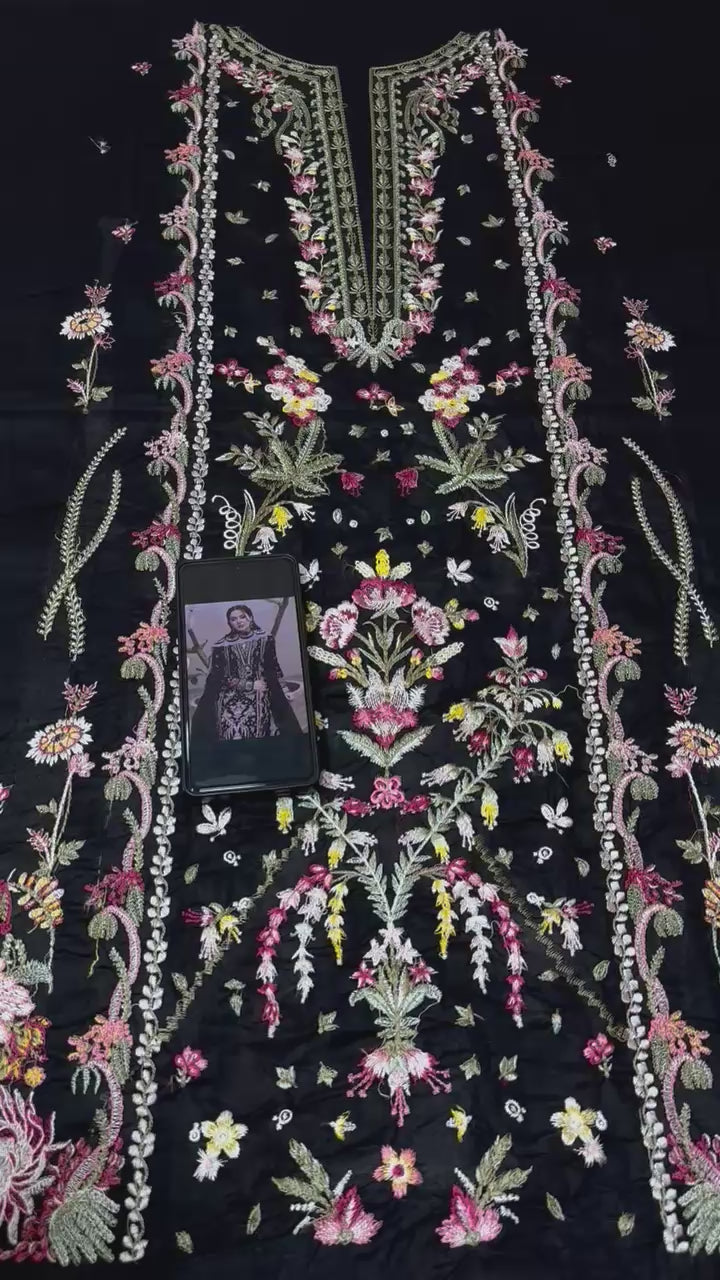 FRONT = PURE LAWN HEAVILY EMBROIDERY WITH RESHAM & THREAD. ALONG WITH ALL ACCESSORIES TOTAL ORIGINAL DESIGNS & COLORS FULL FLAIR & FULL LENGTH HEAVY EMBROIDERY AS PER ORIGINAL.