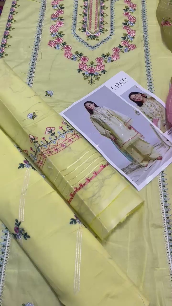 *zara shahjahan Luxury collection hit Code Available on Fine Quality 90/70 Lawn with voil diamond Dopatta*